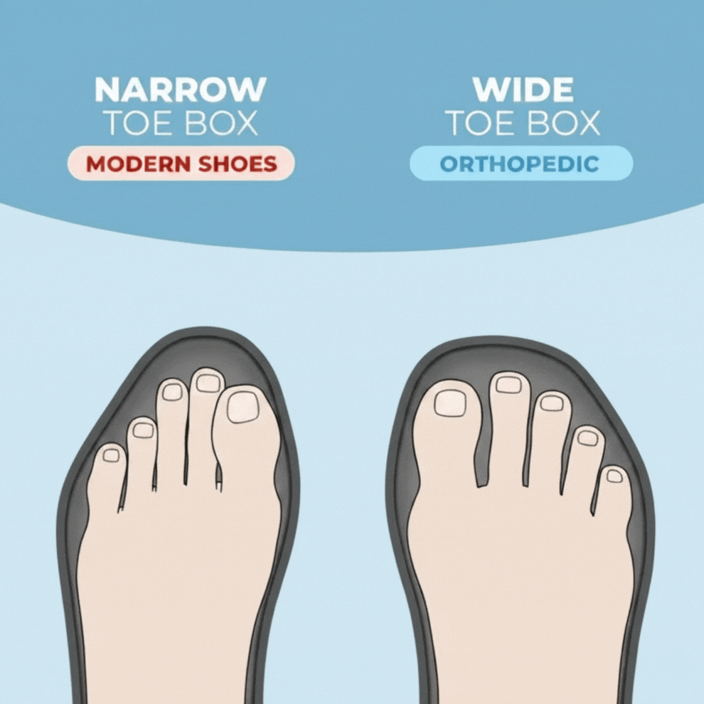 - Reduces Pain: A wide toe box allows your toes to straighten out naturally, which helps reduce pressure and pain.